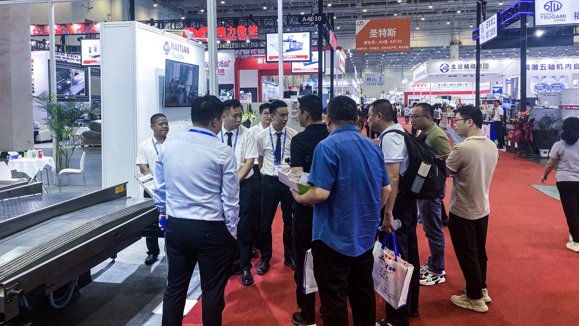 展會現場人頭攢動,海天精工工作人員向來往客商全方位、多維度講解產品性能,分享應用方案,得到客戶贊賞與肯定。