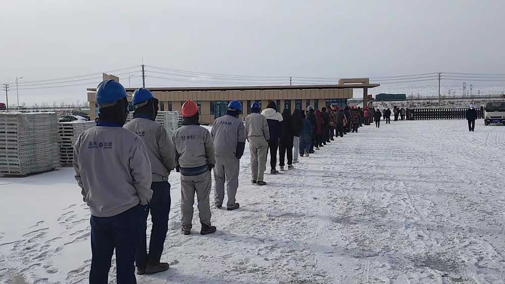 2022年,甘肅日月建造時(shí)正值深冬,十二月的西北大雪紛飛,氣候條件相當(dāng)惡劣。為了保證現(xiàn)場設(shè)備的同步安裝、趕上交付的工期,海天精工勇?lián)厝危沙隽艘恢I(yè)能力過硬的服務(wù)團(tuán)隊(duì),與甘肅日月的員工們吃住在一起,甚至就地駐扎在集裝箱內(nèi)以便隨時(shí)為客戶服務(wù)。遇山開山,逢水架橋,海天精工全心全意為客戶創(chuàng)造價(jià)值,見證了甘肅日月一期年產(chǎn)10萬噸大型風(fēng)電鑄件制造及精加工項(xiàng)目從無到有的歷程。