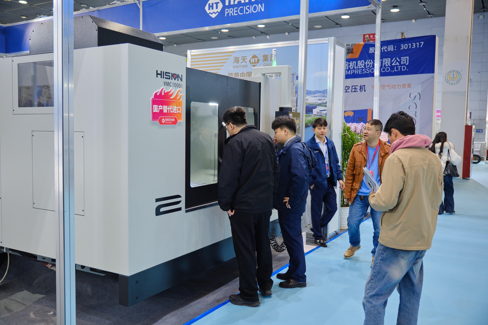 展會現場,HPC500II臥式加工中心適合新能源領域大批量小型零件自動化生產需求,是媲美進口設備的理想選擇。VMC1000Ⅱ立式加工中心搭載海天H10數控系統,保證了機床的穩定性和可靠性,更加貼合市場需求。多款高端數控機床產品,以其卓越的性能、精湛的工藝和智能化的操作體驗,贏得了現場觀眾的一致好評。