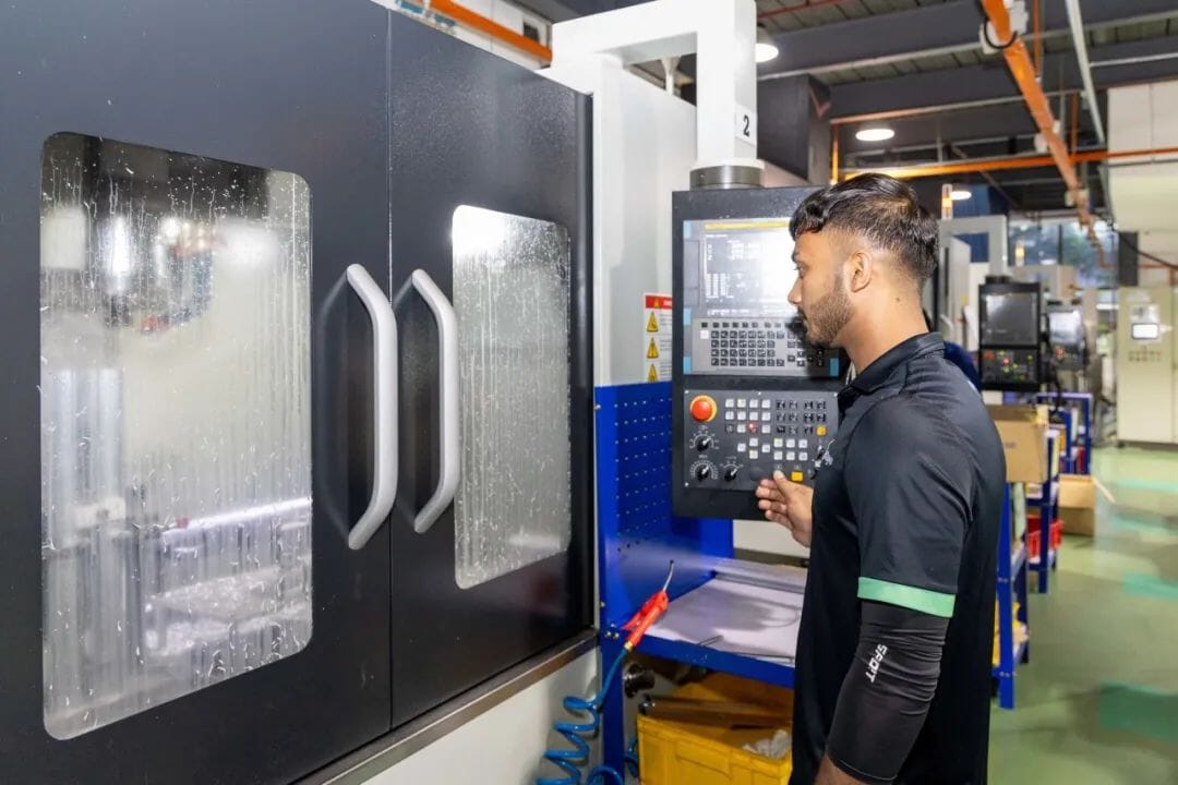 海天精工的價(jià)值遠(yuǎn)不止硬件,它更為客戶提供一套“生長(zhǎng)型”解決方案。當(dāng)機(jī)床進(jìn)駐工廠時(shí),工程師便帶著應(yīng)用方案駐廠協(xié)調(diào),從機(jī)床參數(shù)到零件試切,以最快速度完成機(jī)器調(diào)試。有任何問題,海天精工順德服務(wù)中心半天內(nèi)即可到達(dá),這種“響應(yīng)無時(shí)差”的服務(wù),成為江門速可眾快速交付的底氣。