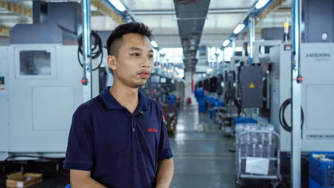 “從浙江老廠到江門新基地,海天設(shè)備跟了我們十幾年。” 李海齡對(duì)此十分感慨。在早期生產(chǎn)中,海天精工機(jī)床的剛性與穩(wěn)定性優(yōu)勢(shì)便十分明顯。在江門廠區(qū)建成后,速可眾便果斷投入100臺(tái)立式加工中心應(yīng)對(duì)極速增長(zhǎng)的業(yè)務(wù)需求。海天精工公差波動(dòng)始終控制在5絲以內(nèi),廢品率近乎歸零,令其十分滿意。江門速可眾車間生產(chǎn)主管胡銳明與我們說道:“海天精工立加性能穩(wěn)定,電主軸效率高,對(duì)比友商能提高20%。而且自帶應(yīng)用參數(shù)配置,在使用中十分方便,很符合實(shí)際情況。”
